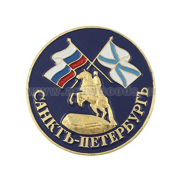 Значок мет. Санктъ-Петербургъ (Медный всадник и флаги, кругл.)