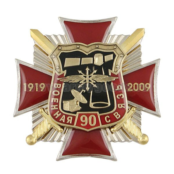 Значок мет. 90 лет Военной связи 1919-2009 (красный крест с накл., смола)