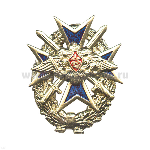 Значок мет. Мальт. крест с орлом РА и винтовками (с флагом РФ внизу) син. с окантовкой