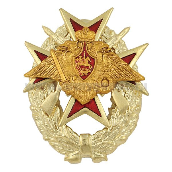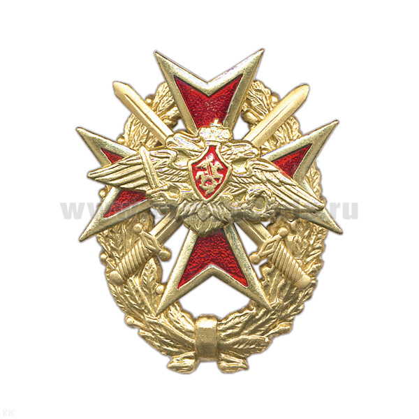 Значок мет. Мальт. крест с орлом РА и мечами (с флагом РФ внизу) красн. с окантовкой