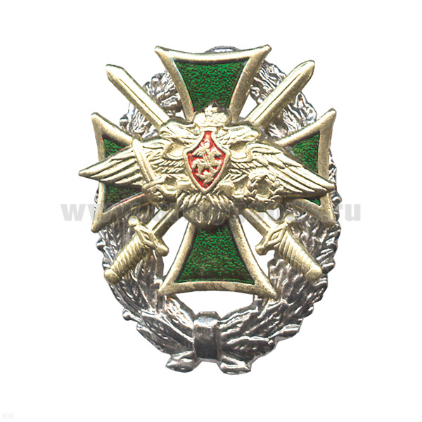 Значок мет. Крест с мечами и орлом РА (зел. в венке)