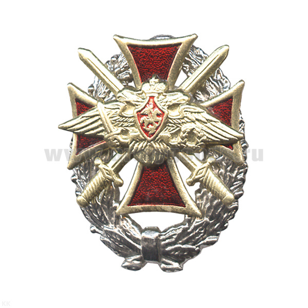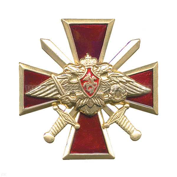 Значок мет. Крест с орлом РФ и мечами (с флагом РФ внизу) красн.