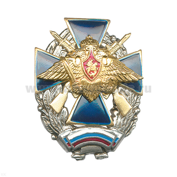 Значок мет. Крест с орлом РА и винтовками (с флагом РФ внизу) син.