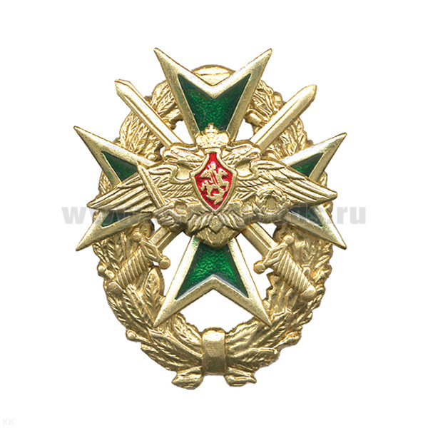 Значок мет. Крест с мечами и орлом РА (зел.)