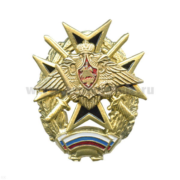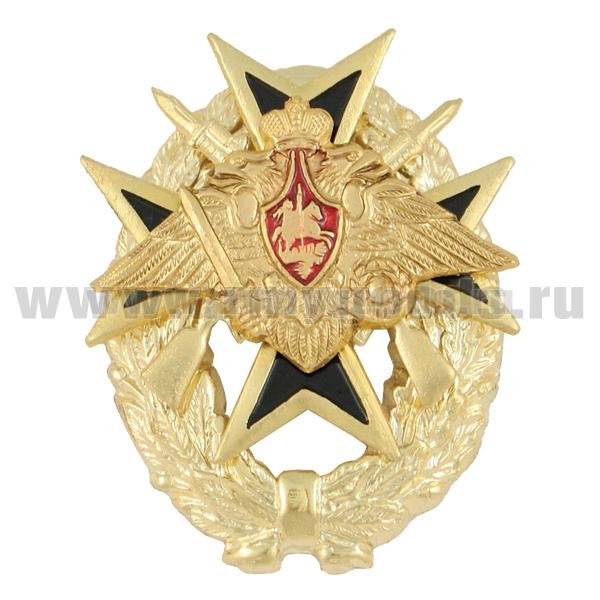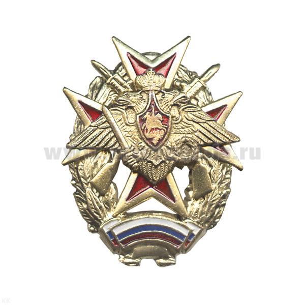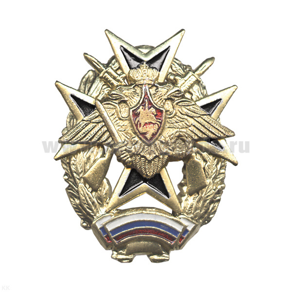 Значок мет. Мальт. крест с орлом РА и мечами (с флагом РФ внизу) черн. с окантовкой