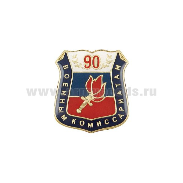 Значок мет. 90 лет военным комиссариатам (щит с синей лентой, смола, на пимсе)