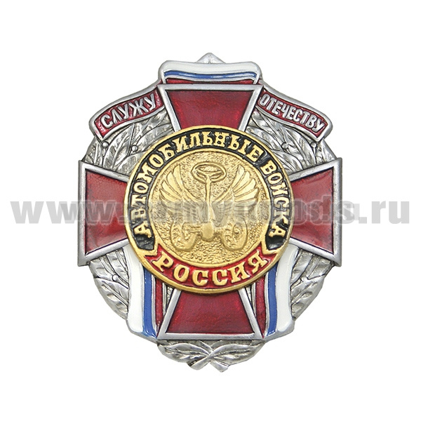 Значок мет. Служу отечеству Автомобильные войска (красн. крест)