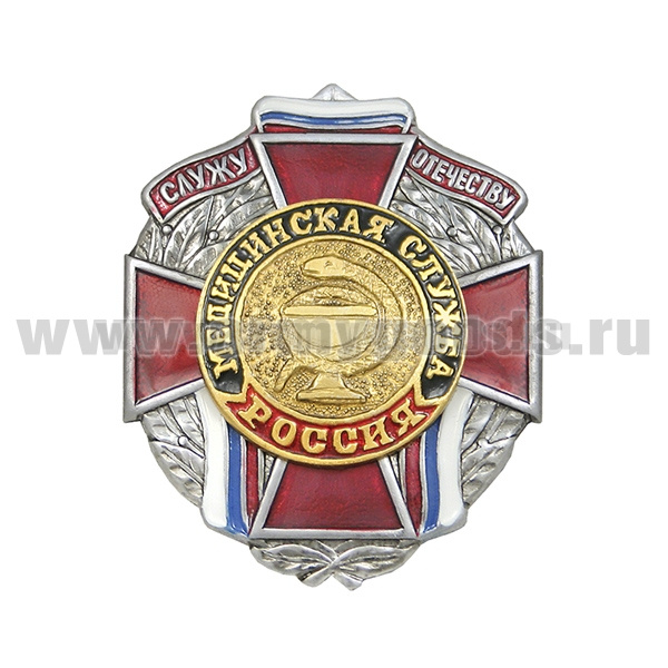 Значок мет. Служу отечеству Медицинская служба (красн. крест)