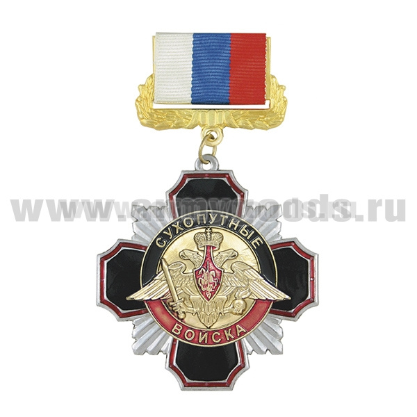 Медаль Стальной черн. крест с красн. кантом Сухопутные войска (на планке - лента РФ)