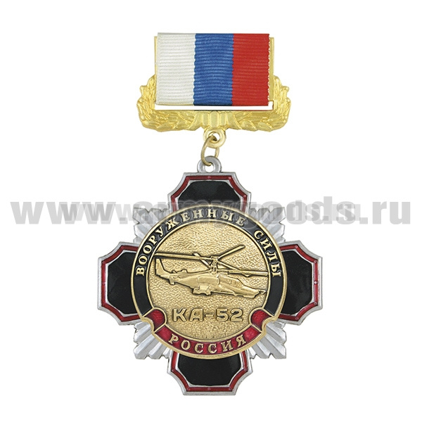 Медаль Стальной черн. крест с красн. кантом Вооруженные силы Вертолет КА-52 (на планке - лента РФ)