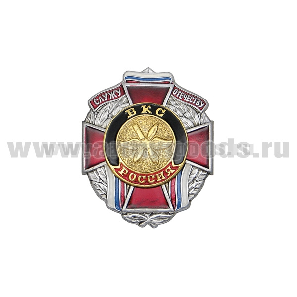 Значок мет. Служу отечеству ВКС (красн. крест)