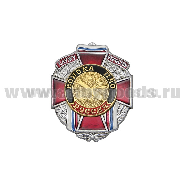 Значок мет. Служу отечеству Войска ПВО (красн. крест)