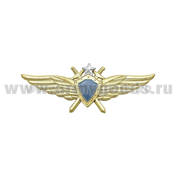 Значок мет. Классность ВВС нов/обр чистая (голубой щит, серебряная звезда, мечи)