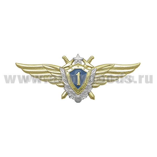 Значок мет. Классность ВВС нов/обр 1 класс (голубой щит, серебряная звезда, мечи)