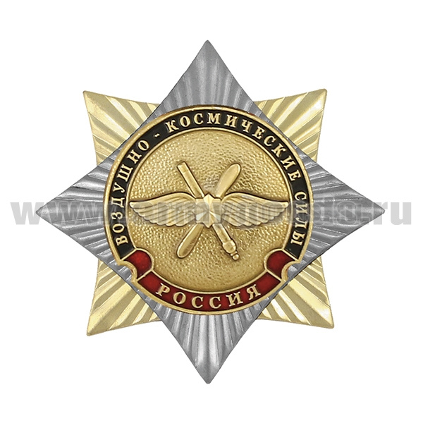 Медаль Стальной черн. крест с красным кантом Воздушно-космические силы (на планке - лента РФ)