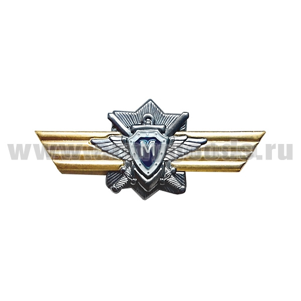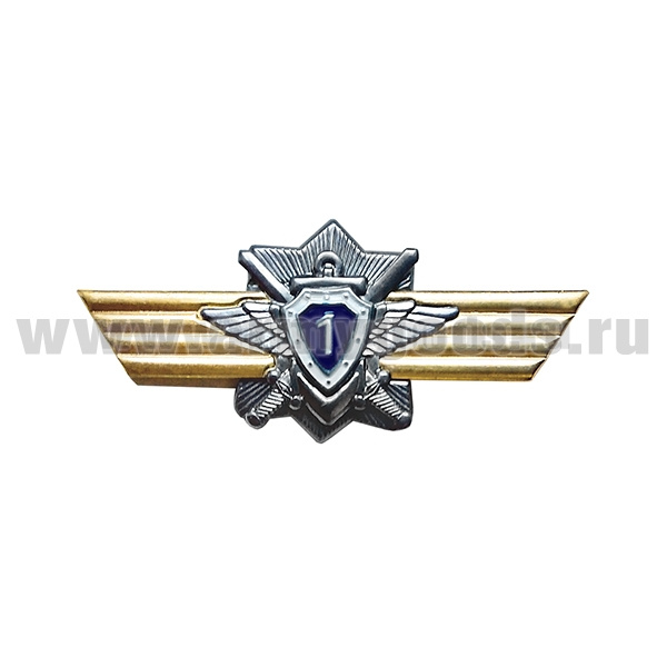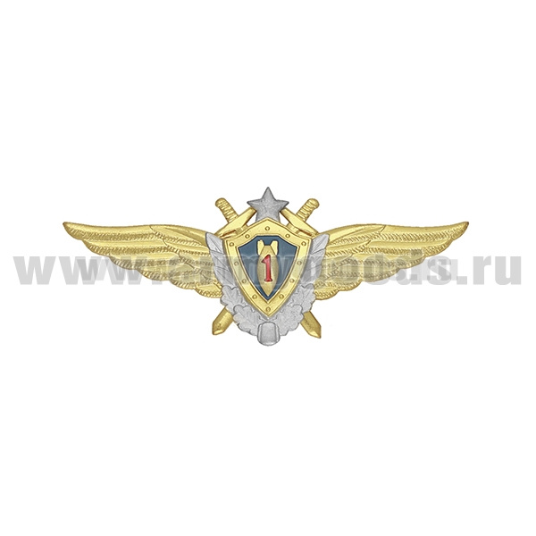 Значок мет. Классность ВВС нов/обр летчик-штурман 1 класс (голубой щит, серебряная звезда, мечи)