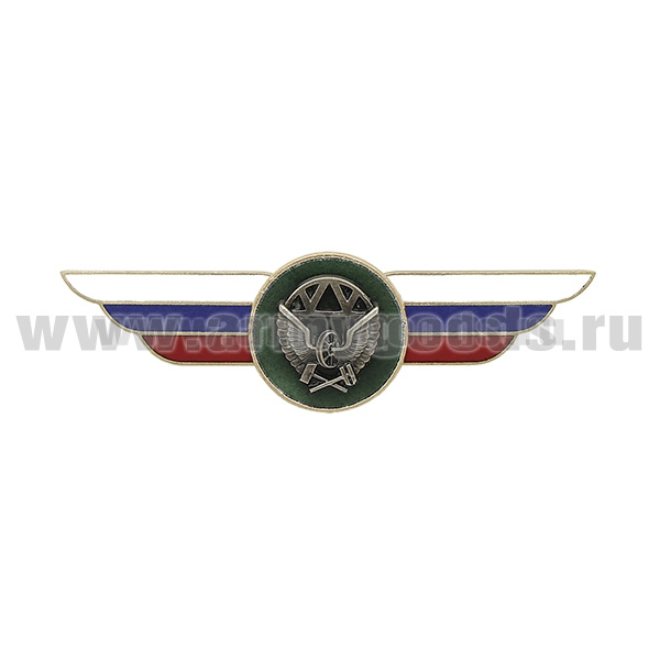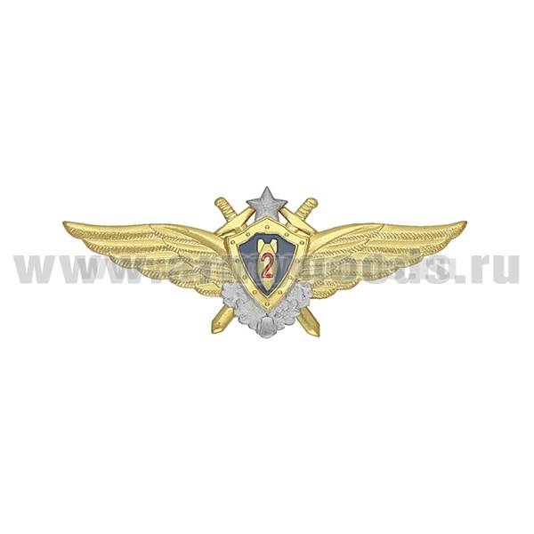 Значок мет. Классность ВВС нов/обр летчик-штурман 2 класс (голубой щит, серебряная звезда, мечи)