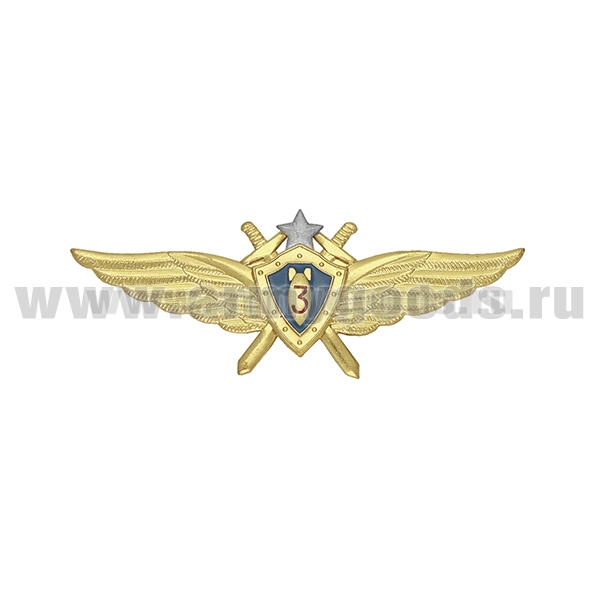 Значок мет. Классность ВВС нов/обр летчик-штурман 3 класс (голубой щит, серебряная звезда, мечи)