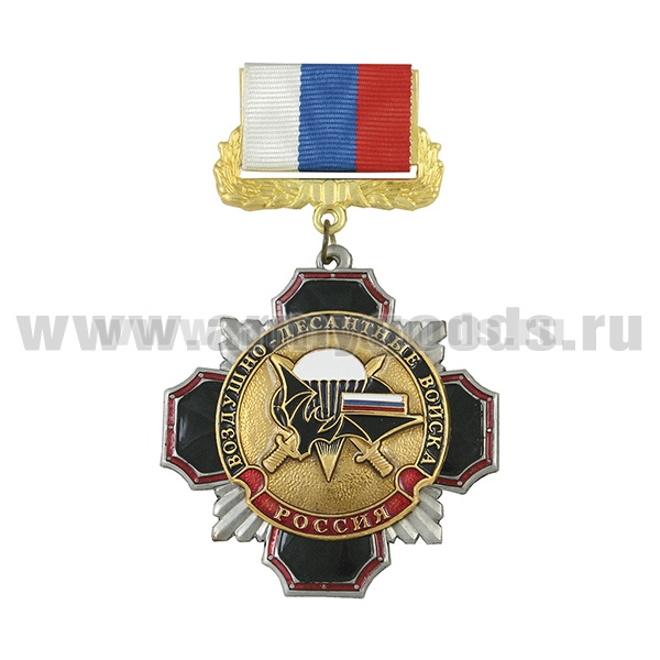 Медаль Стальной черн. крест с красн. кантом ВДВ (лет. мышь с парашютом и мечами) (на планке - лента РФ)