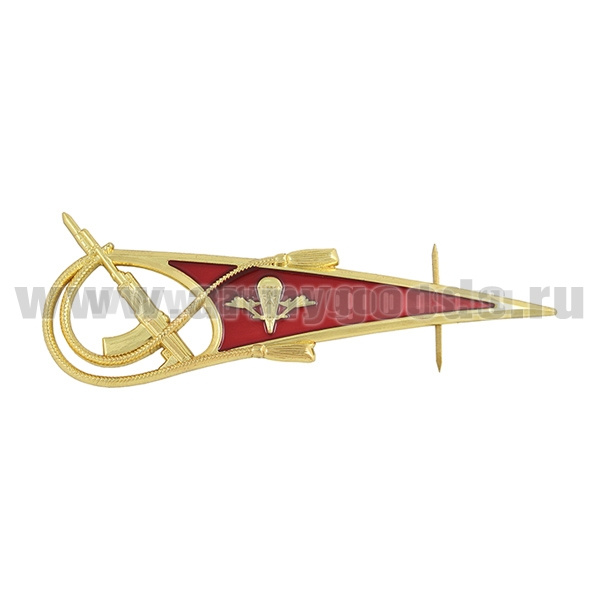 Флажок на берет неуст. (уголок) мет. ВДВ бол. (эмблема ВДВ СССР на красном фоне) (с автоматом) сплав ЦАМ