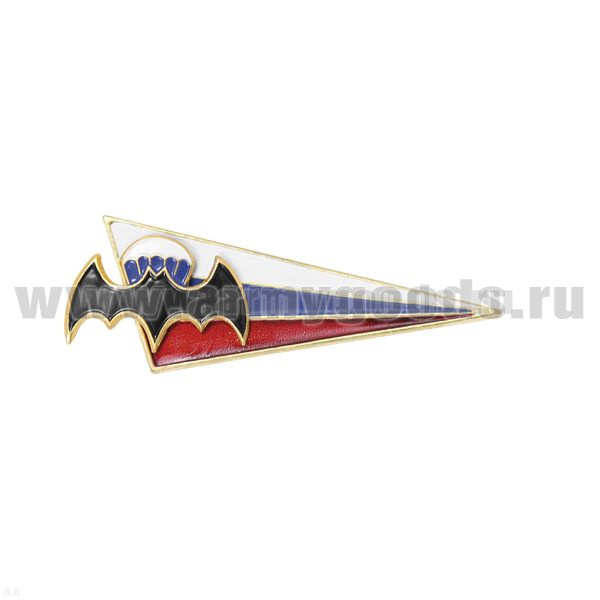 Флажок на берет неуст. (уголок) мет. мал. (флаг РФ с летуч. мышью бол. на парашюте)