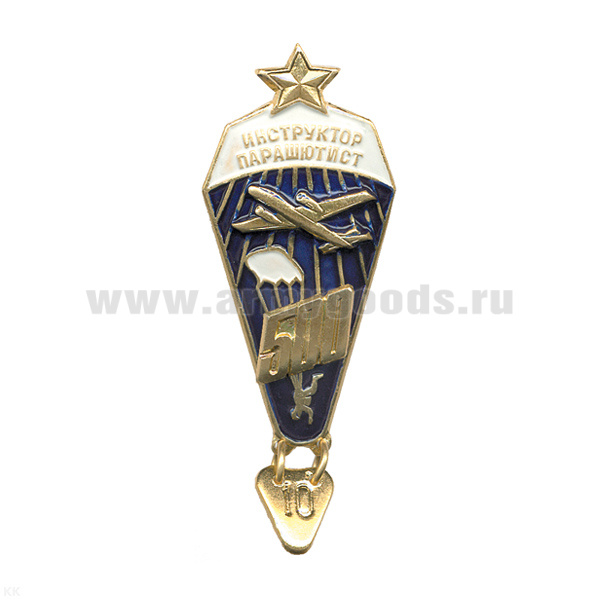 Значок мет. Инстр.-парашютист 500 прыжков (с желт. звездой) хол. эм.