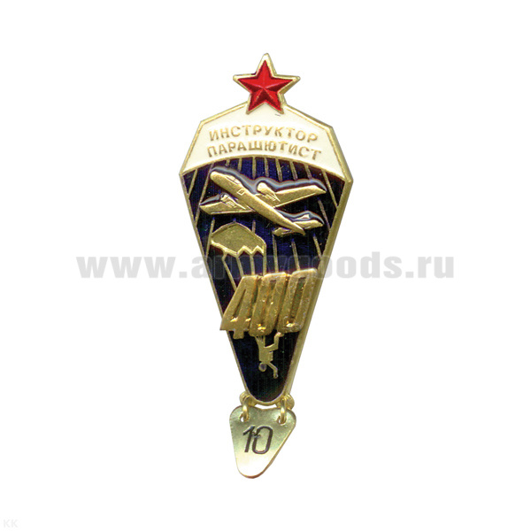 Значок мет. Инстр.-парашютист 400 прыжков (с красн. звездой) хол. эм.