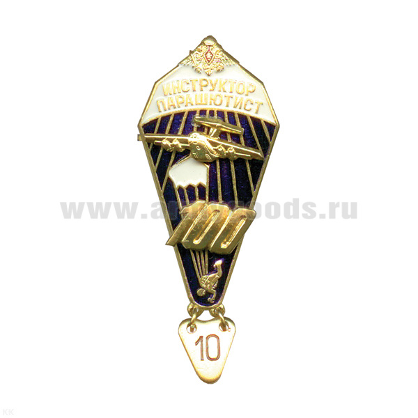 Значок мет. Инстр.-парашютист 100 прыжов (с орлом и накл. самолетом) хол. эм.