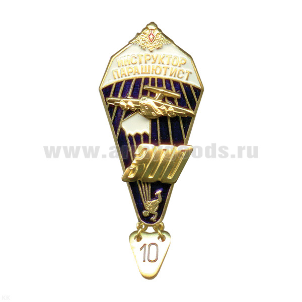 Значок мет. Инстр.-парашютист 300 прыжов (с орлом и накл. самолетом) хол. эм.