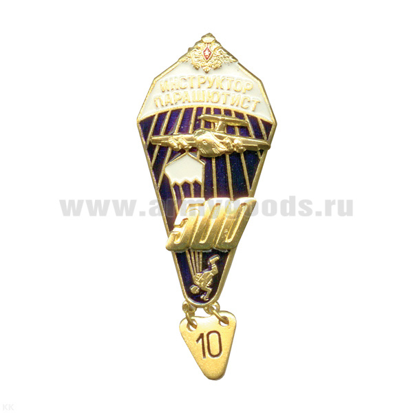 Значок мет. Инстр.-парашютист 500 прыжов (с орлом и накл. самолетом) хол. эм.