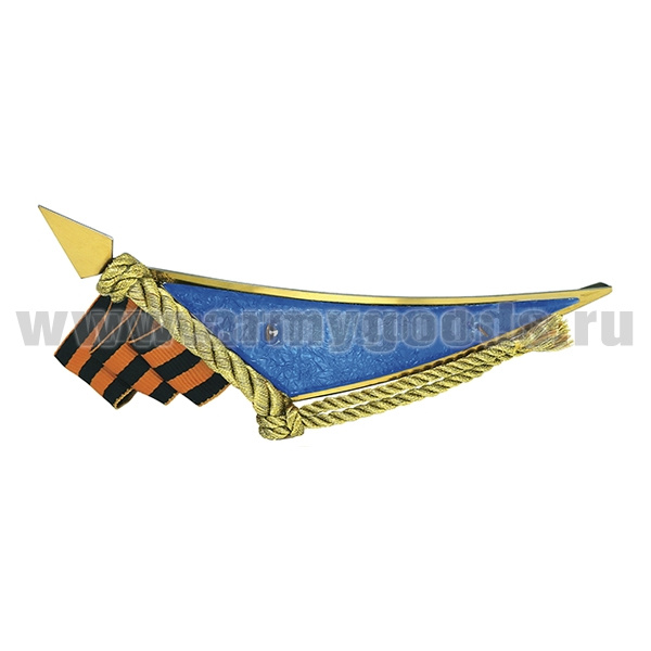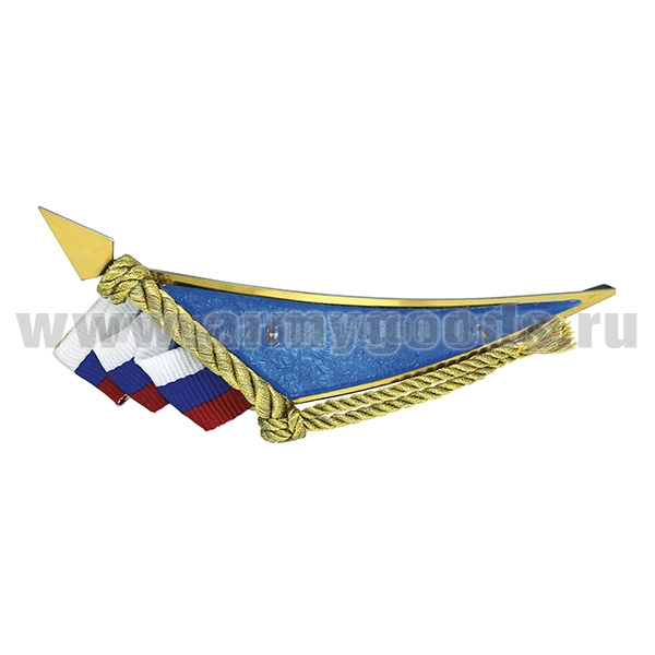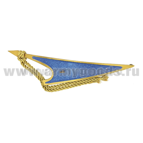 Флажок на берет неуст. (уголок) мет. голубой бол. с зол. шнуром (нерж. сталь с зол. напылением и пласт. накладкой)