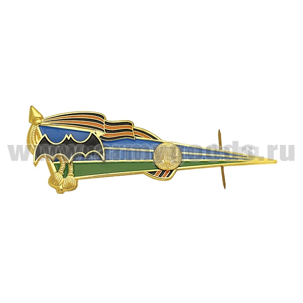 Флажок на берет неуст. (уголок) мет. голубой бол. с гвардейской лентой (нерж. сталь с зол. напылением и пласт. накладкой)