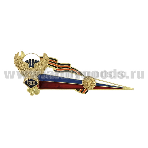 Флажок на берет неуст. (уголок) мет. ВДВ бол. (флаг РФ с орлом ВДВ и эмбл. ВДВ)