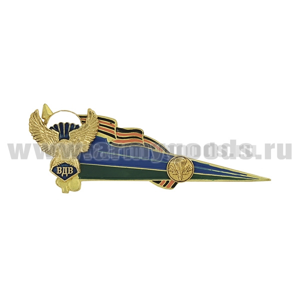 Флажок на берет неуст. (уголок) мет. ВДВ бол. (флаг ВДВ с орлом ВДВ и стрелами  и эмбл. ВДВ) без гвардейской ленты