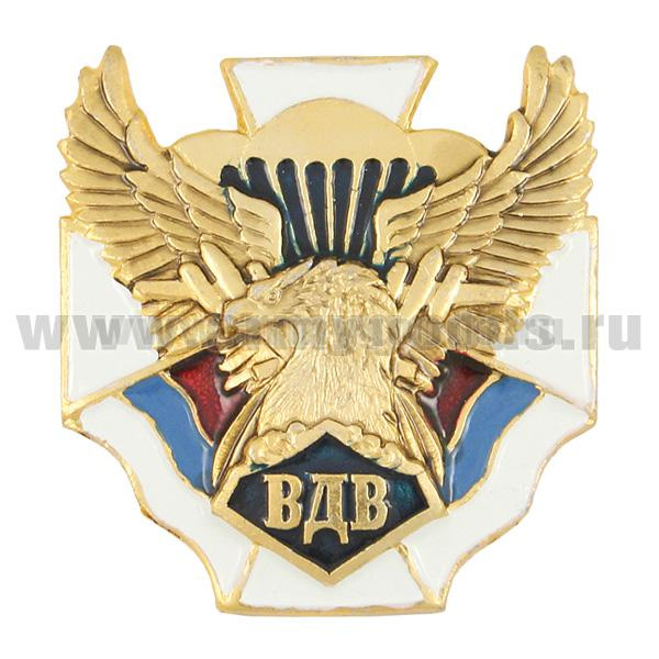 Значок мет. ВДВ (орел, крылья вверх на бел. кресте) (танки, самолеты, парашюты)