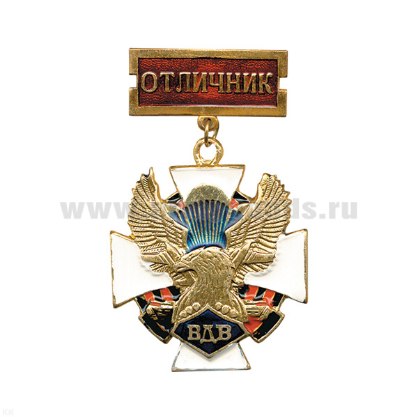 Медаль ВДВ (орел, крылья вверх на бел. кресте с гвард. лентой) (на планке - Отличник)