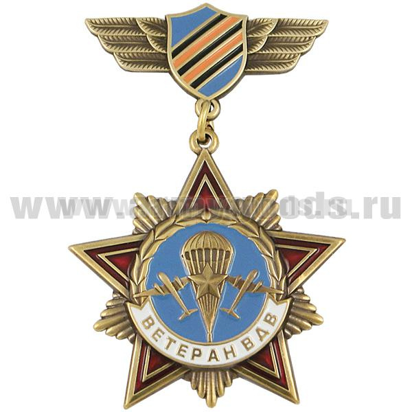Медаль ВДВ (орел, крылья вверх на бел. кресте с гвард. лентой) (на планке - ВДВ)