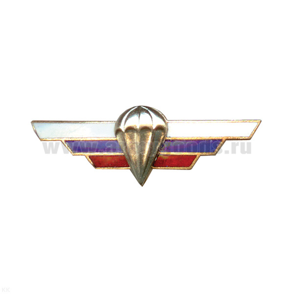 Значок мет. Крылья триколор с парашютом (команда "К" ВДВ России) гор. эм.