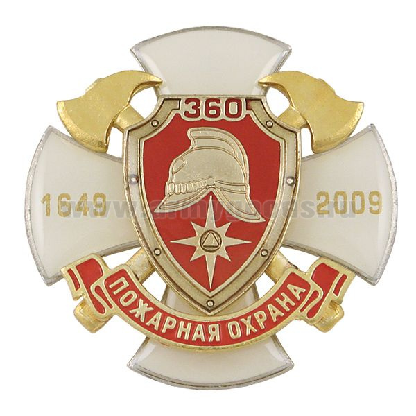 Значок мет. 360 лет пожарной охране 1649-2009 (белый крест с накл., заливка смолой)
