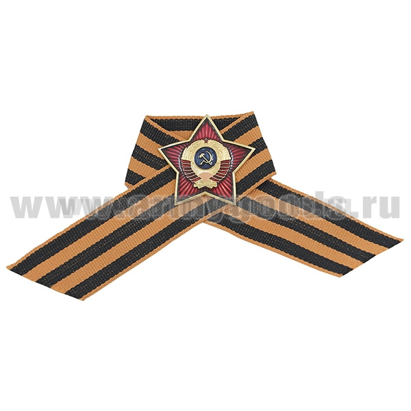 Значок мет. Красная звезда с гербом СССР на Георгиевской ленте
