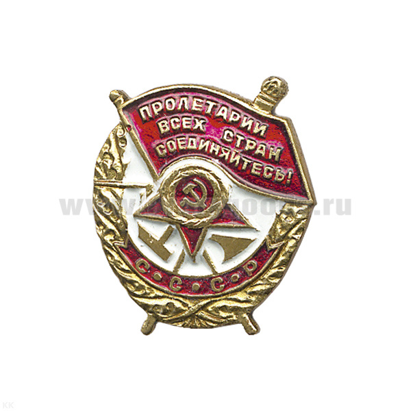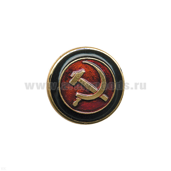 Значок мет. Серп и молот в круге на красном фоне с черным кантом (лат.)