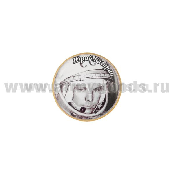 Значок мет. Юрий Гагарин (фото в шлеме 12 апреля 1961 сосредоточенный) круглый, смола, на пимсе
