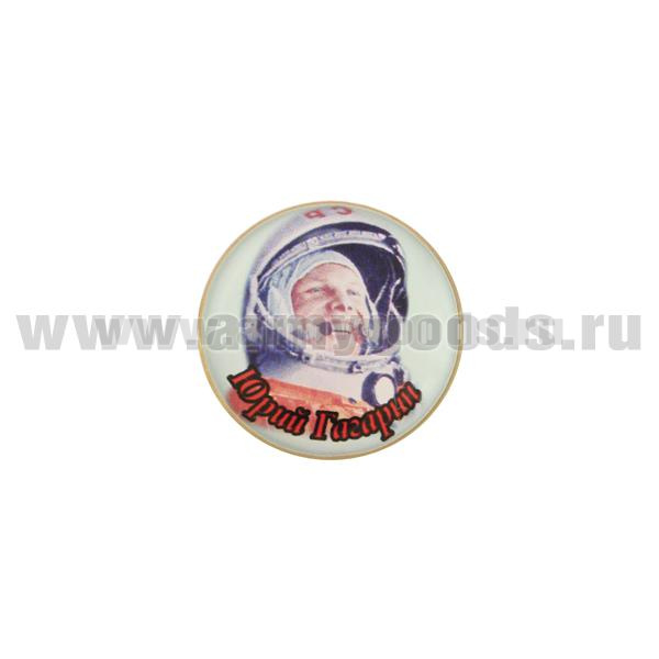Значок мет. Юрий Гагарин (фото в шлеме 12 апреля 1961 счастливый) круглый, смола, на пимсе