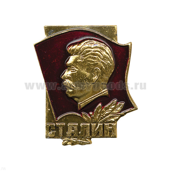 Значок мет. Сталин на фоне флага, алюм.