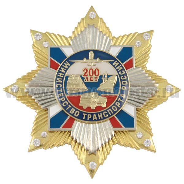 Значок мет. 200 лет министерству транспорта России (звезда с накл. на звезде с фианитами)