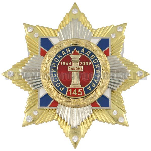 Значок мет. 145 лет российской адвокатуре (звезда с накл. на звезде с фианитами)