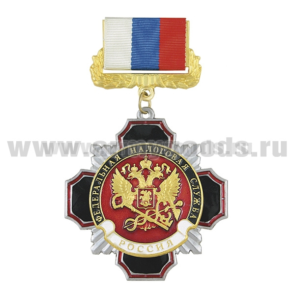 Медаль Стальной черн. крест с красн. кантом Федеральная налоговая служба (на планке - лента РФ)