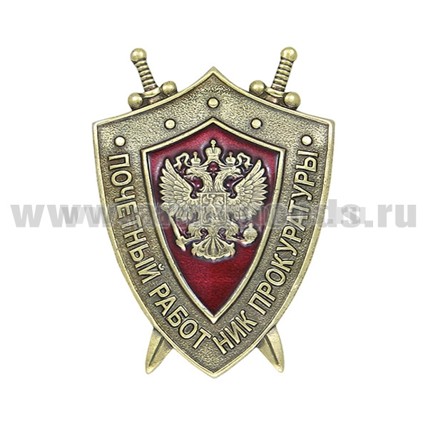 -Значок мет. Почетный работник прокуратуры (щит с двумя мечами)