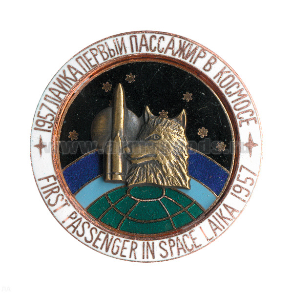 -Значок мет. Лайка - первый пассажир в космосе (серия Космос) гор. эм.