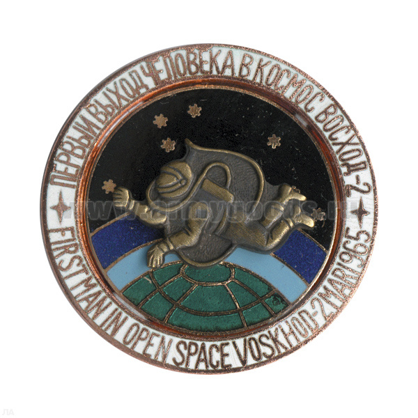 Значок мет. Первый выход человека в космос Восход-2 (серия Космос) гор. эм.